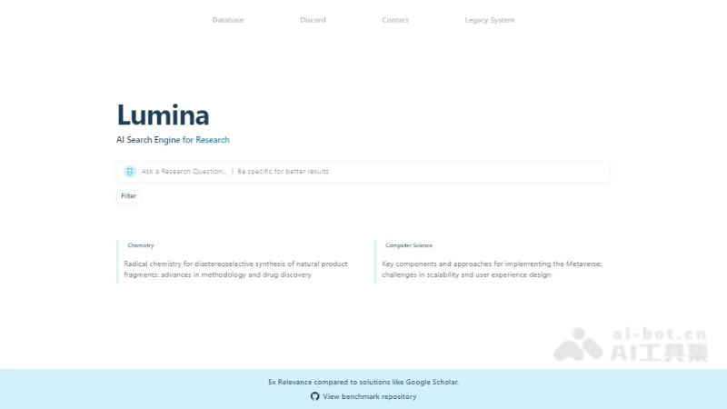 Lumina是一款完全免费的AI学术搜索引擎,搜索结果相关性平均比谷歌学术高出5倍,支持超1亿研究对象搜索,而且是真正的完全免费。Lumina提供快速响应、一键筛选PDF文件、多维度过滤选项,具备AI概述功能,帮助用户快速获取研究论文的摘要和关键信息。Lumina还支持24种语言,致力于提升学术研究的效率和深度。